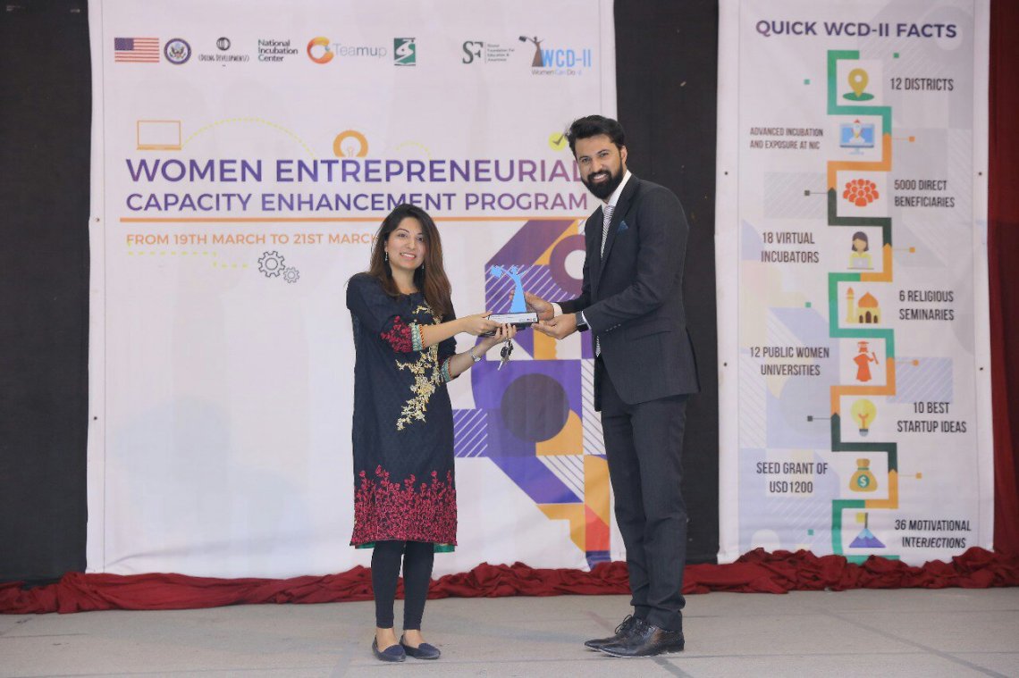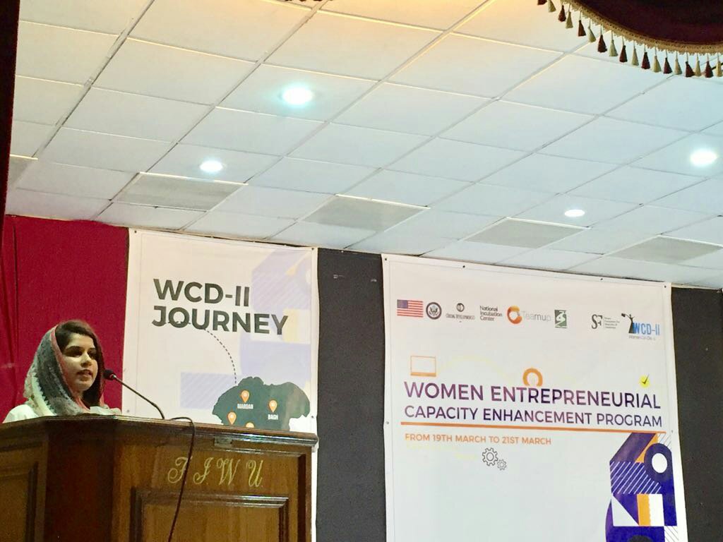 پراجیکٹ مینجر عمارہ قاضی نے طالبات کو آگاہ کیا کہ کسطرح طالبات ویمن کین ڈو کی مدد سے سیڈ گرانٹ حاصل کر کے کامیاب کاروبار شروع کر سکتی ہیں۔