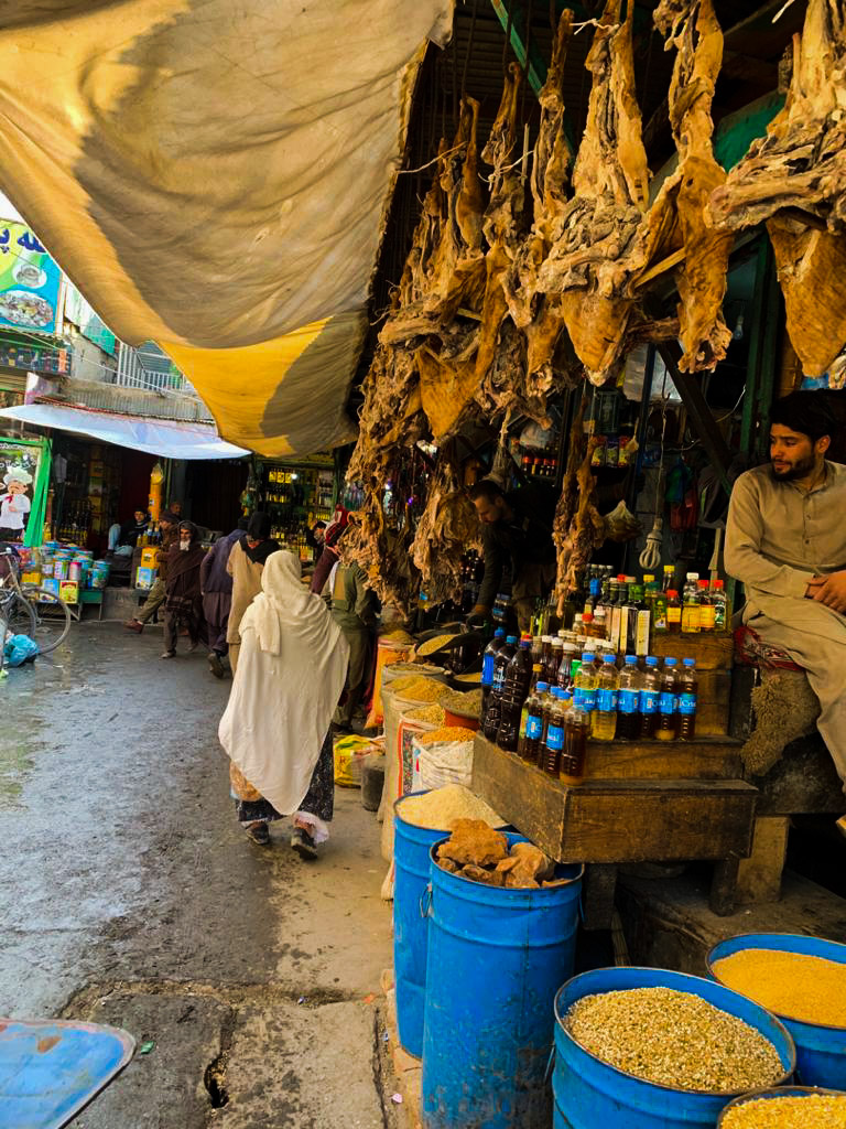گاڑی سے اترتے ہی رونق سے بھرپور ایک بازار ملا ۔ ریڑھیوں پہ لدے میوے ، انار کا جوس ، ہو زری کا سامان ، آرائشی اشیاء ، سکارف ، بیٹریاں ، تول کے حساب سے کپڑا ، زمین پہ پڑے کٹ پیس کے ڈھیر ، نسوار فروش ، ماہی فروش ، خشک میوہ ، پتیسے ، نمکو ، نُقل کے تھیلے خرید و فروخت کرنے والے سبھی مرد اور ان کا سامان ٹھکانے لگانے کے لیے پلاسٹک کے لفافے بیچنے والے ننھے بچے ۔ اکا دکا عورت بھی نظر آ جاتی جسے میں آٹے میں نمک کے برابر کہہ سکتی ہوں ۔ اندرونی گلیوں میں چھوٹی بڑی دکانیں تھیں ۔ ایک جگہ قالین فروش دو تاجیک خوش گپیوں میں مصروف تھے تو ایک دکان پہ آلات موسیقی برائے فروخت تھے ۔ سبھی مستعمل تھے جنھیں دکان دار نے مرمت کر کے بیچنے کے لیے پیش کر دیا ۔